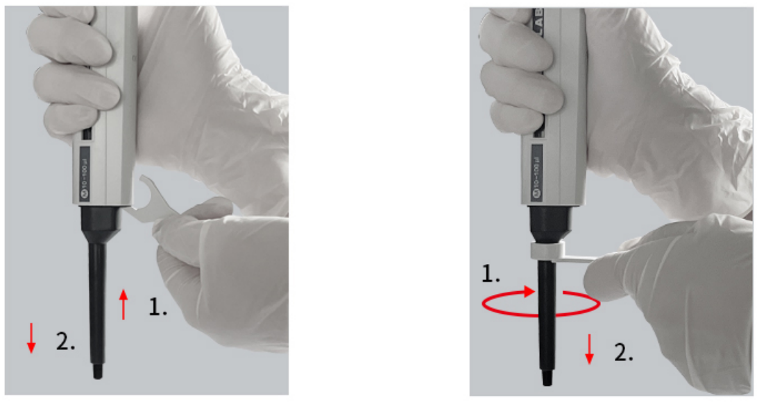 Для достижения максимальной точности, всегда медленно нажимайте и отпускайте кнопку, особенно при работе с жидкостями высокой вязкости. Никогда не допускайте, чтобы кнопка управления защелкивалась. Убедитесь, что наконечник чистый и плотно прижат к конусу наконечника пипетки, а
